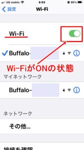 にも有効なのが、ONになっているWi-Fiを一度切って、もう一度ONにしてみる方法。