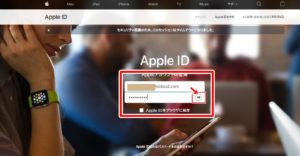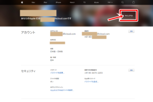 ①ここをクリックしてppleIDのアカウントにサインインします。