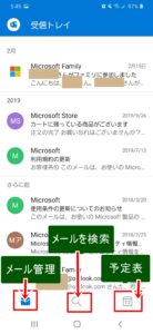 ※下の3つの項目をタップすることで、「メール」や「予定表」など切り替えて使えます。
