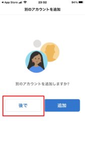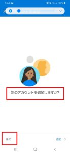 ※別のアカウントを追加しますか?」と出た場合は「後で」を選択します。