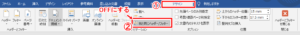 ・デザインタブを開き「前と同じヘッダー/フッター」がONになっているので