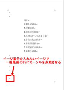 ・2ページ目の目次の一番最後の場所にカーソルが点滅した状態にします。