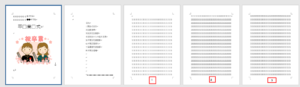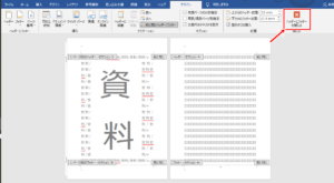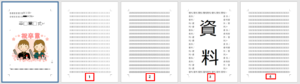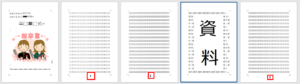ここでは、表紙と間に挟んだ資料には、ページ番号を入れないやり方を解説します。