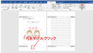 ・表紙の下部のページ番号「1」をダブルクリックします。