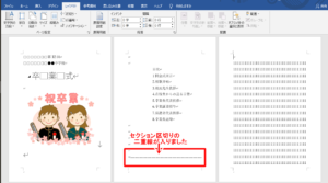 2回目のセクション区切りとページの書式設定
