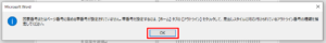 ・下記のメッセージが表示された場合は「OK」で閉じます。