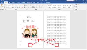 この時点で指定した場所にページ番号が入ります。