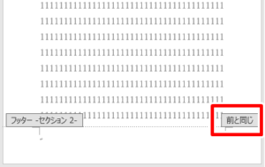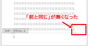 ・「ヘッダーセクション」や「フッダーセクション」など文字が入り、右下には「前と同じ」と出てきます。